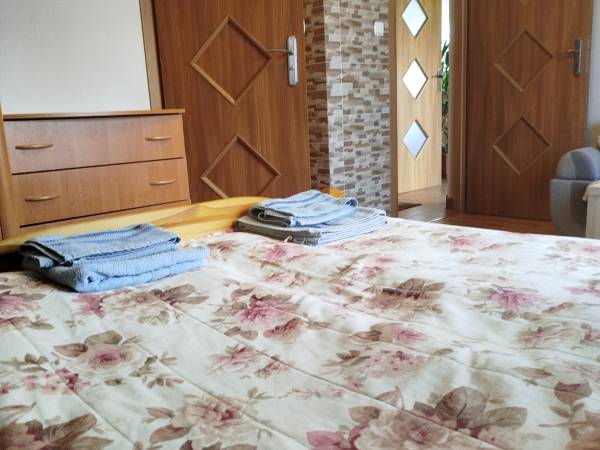 Oferujemy apartament rodzinny 2 pokojowy 4 osobowy z aneksem kuchennym,każdy pokój ma swoją łazienkę,balkon