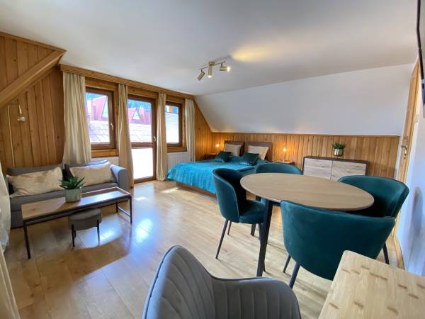 Niezależne piętro na wyłączność : dwa pokoje z balkonami i tv kcd, korytarz, łazienka z wc, łazienka z prysznicem, aneks kuchenny, klatka schodowa, samodzielne wejście z zewnątrz. Dodatkowo : ogrodzony teren rekreacyjny : altana, miejsce do grillowania, taras wypoczynkowy, parking ( ogrodzony, zamykany teren 50 metrów od apartamentu)