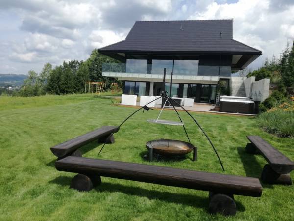 Piękne widoki przez dwie szklane ściany z living roomu jak i sypialń, W cenie jacuzzi zewnętrzne, tem. 39 stopni z mocnym masażem , sauna, drewno do kominka lub ogniska,, szlafroki, ręczniki. kino na dużym opuszczanym ekranie. Ustronnie. , Do dyspozycji . pralka, suszarka bębnowa., zmywarka, ekspres do kawy. B. blisko do Czech i Słowacji. Trójstyk. Bardzo dobrze wyposażona kuchnia, Możliwość zamówienia pysznych domowych obiadów.i ciast prosto na stół w przystępnej cenie. W celu rezerwacji należy zapłacić całą kwotę przelewem . Sprzatanie gotòwka . Zwrotna kaucja 1000,00. - należy wpłacić 2 dni przed przyjazdem.