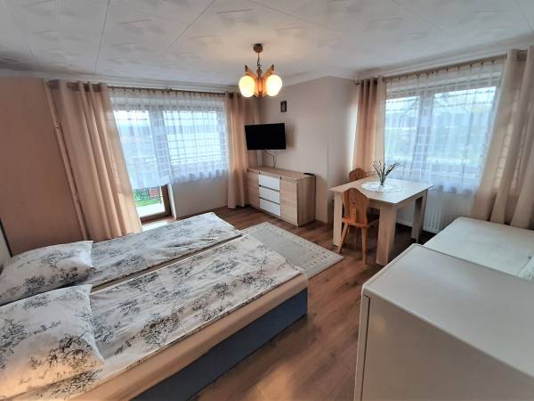 Dzień dobry, oferujemy 2 pokojowe studio z łazienką i balkonem z widokiem na Tatry. Wokół domu rozciąga się duży ogród.