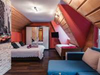 Do dyspozycji POKÓJ 4 OSOBOWY: 2 kondygnacyjny (parter i poddasze), aneks kuchenny, łazienka, internet.